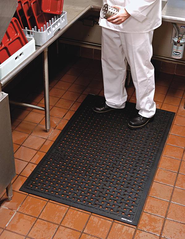 Esto puede remediarse mediante el uso de alfombras con grandes orificios de drenaje, como nuestro felpudo ultraflow, que drena los residuos para mantener la superficie limpia y despejada.